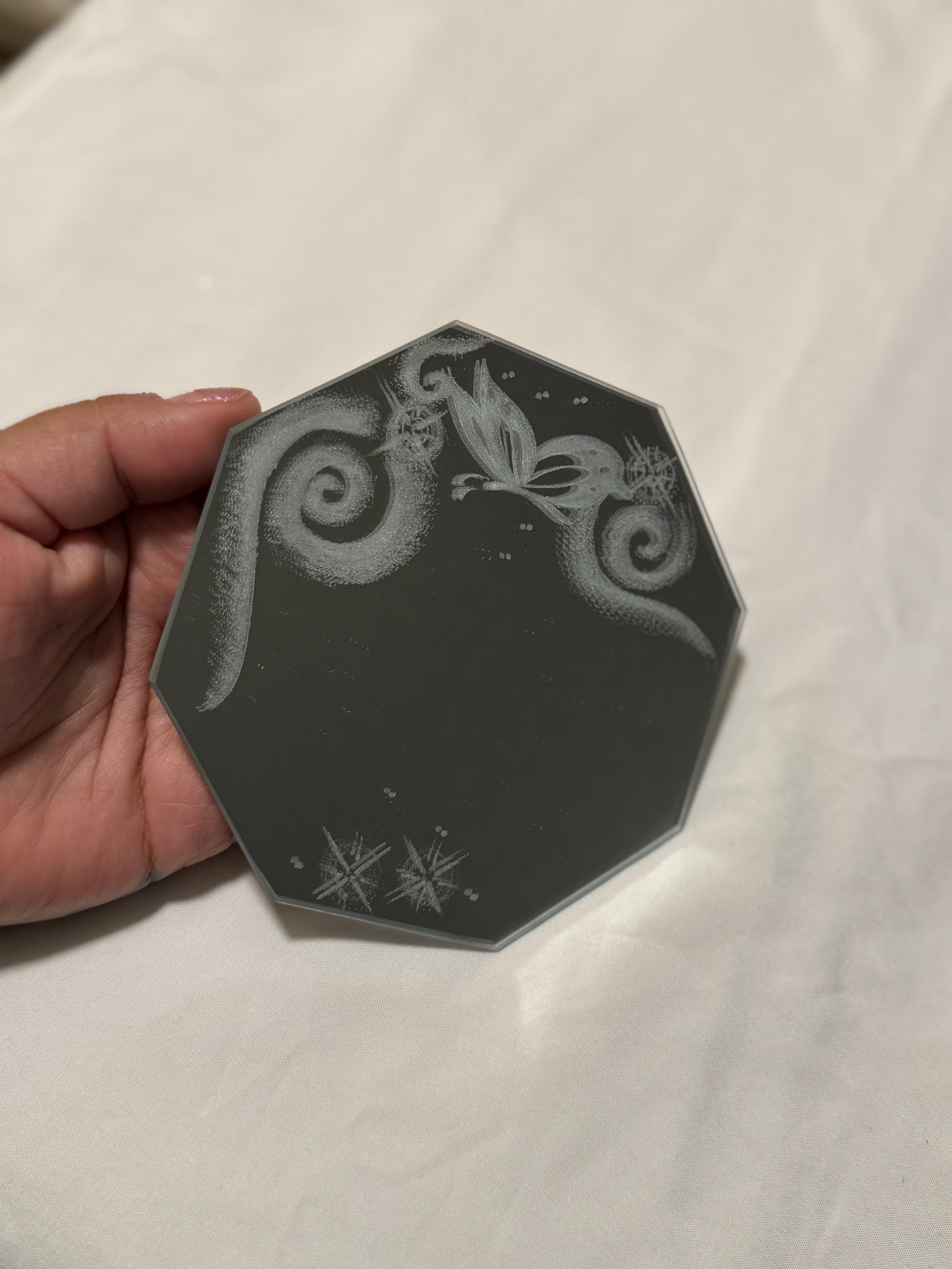 Mini engraved mirror